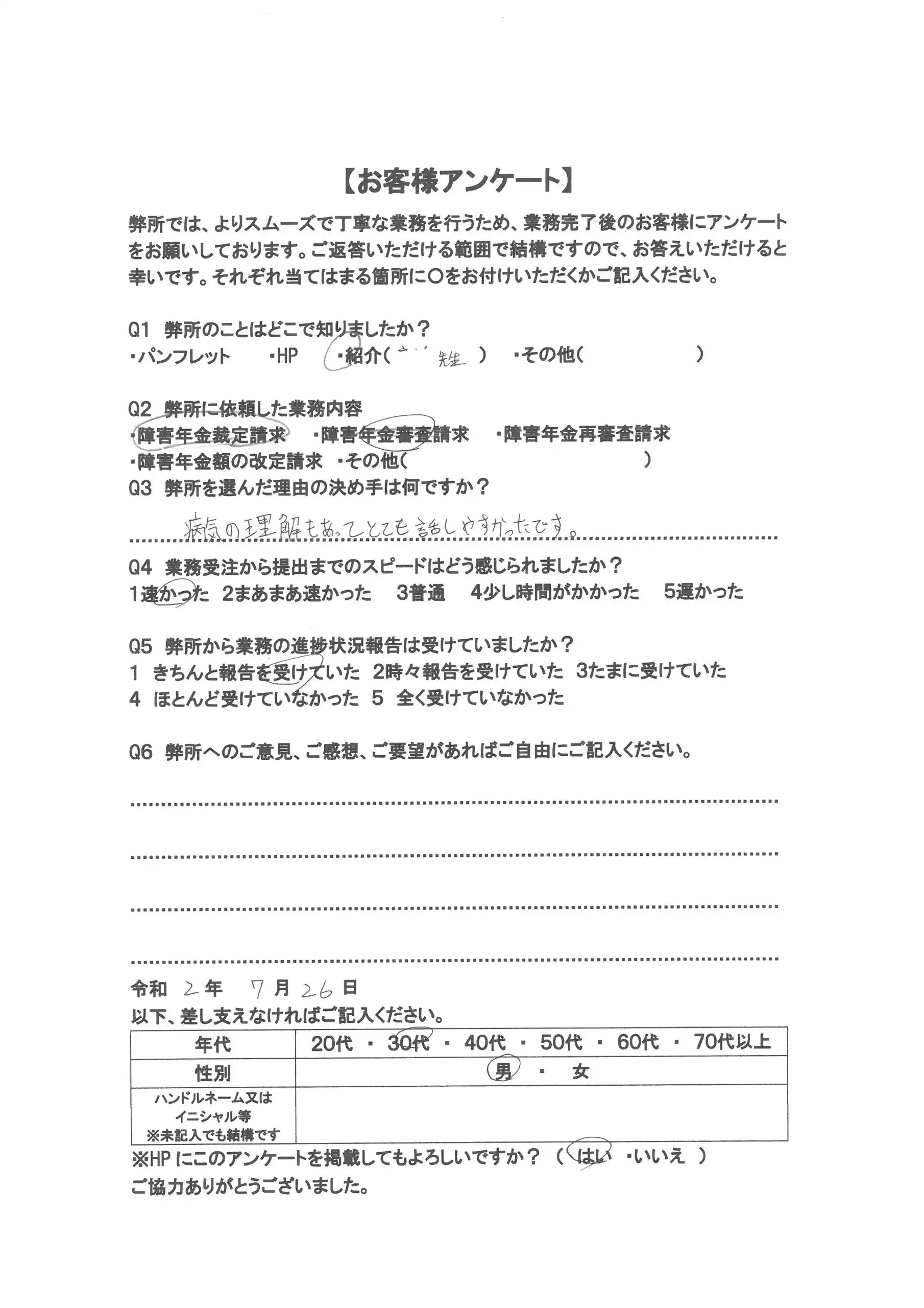 病気への理解があって話しやすかった!~障害厚生年金 障害認定日で2級決定 30代 男性~